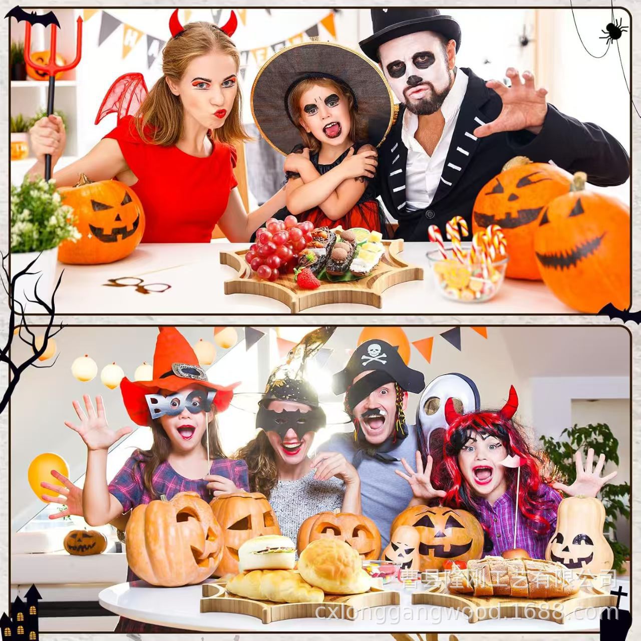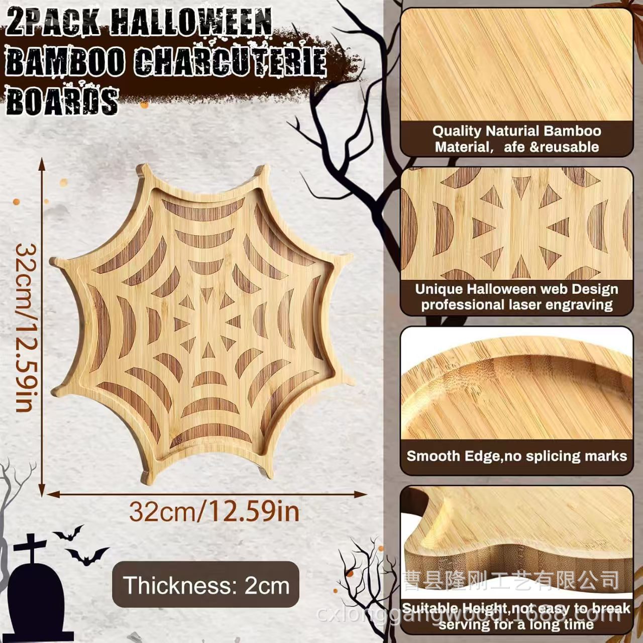 创意木质蜘蛛网托盘万圣节家居摆件装饰品牛排披萨板实木水果盘
