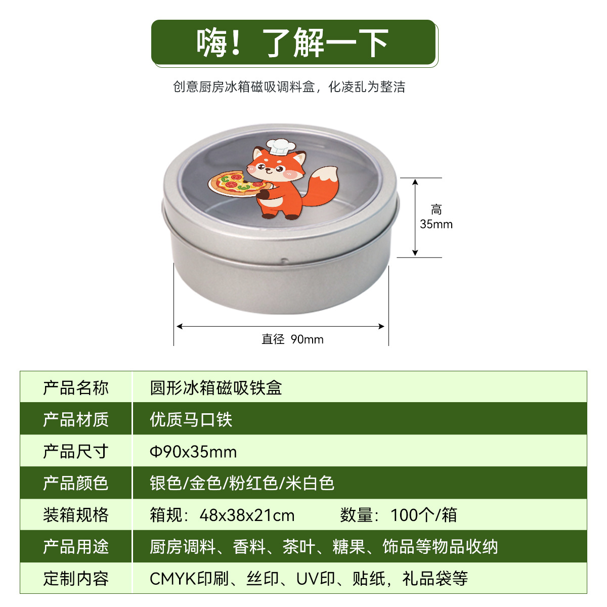 厨房冰箱磁铁收纳盒圆形开窗厨房家用五谷杂粮八角桂叶磁吸收纳盒