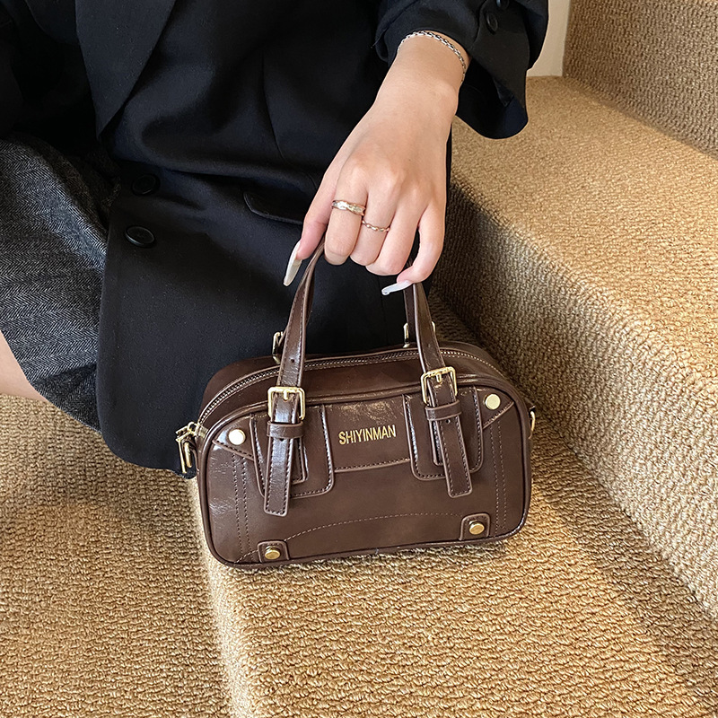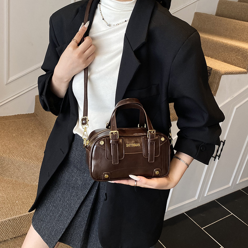 时尚百搭网红同款百搭小众撞色手提斜挎保龄球小方包单肩秋冬新款
