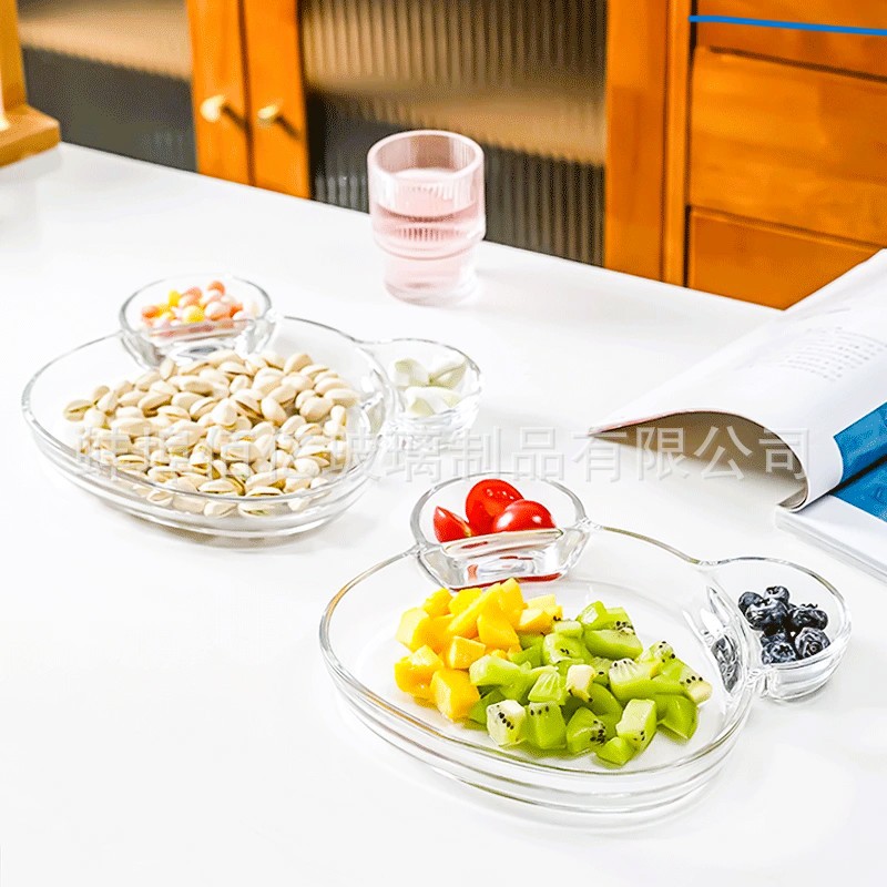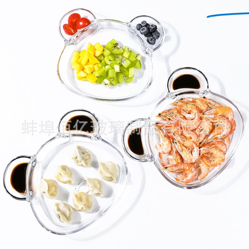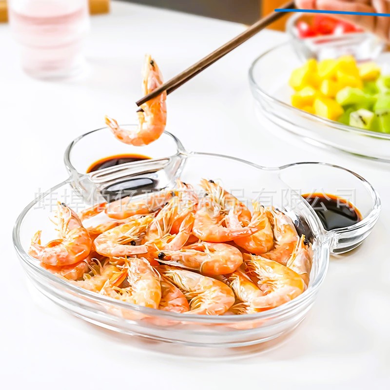 玻璃分格盘简约平盘家用饺子盘带蘸料碟海鲜盘虾盘减脂分餐盘