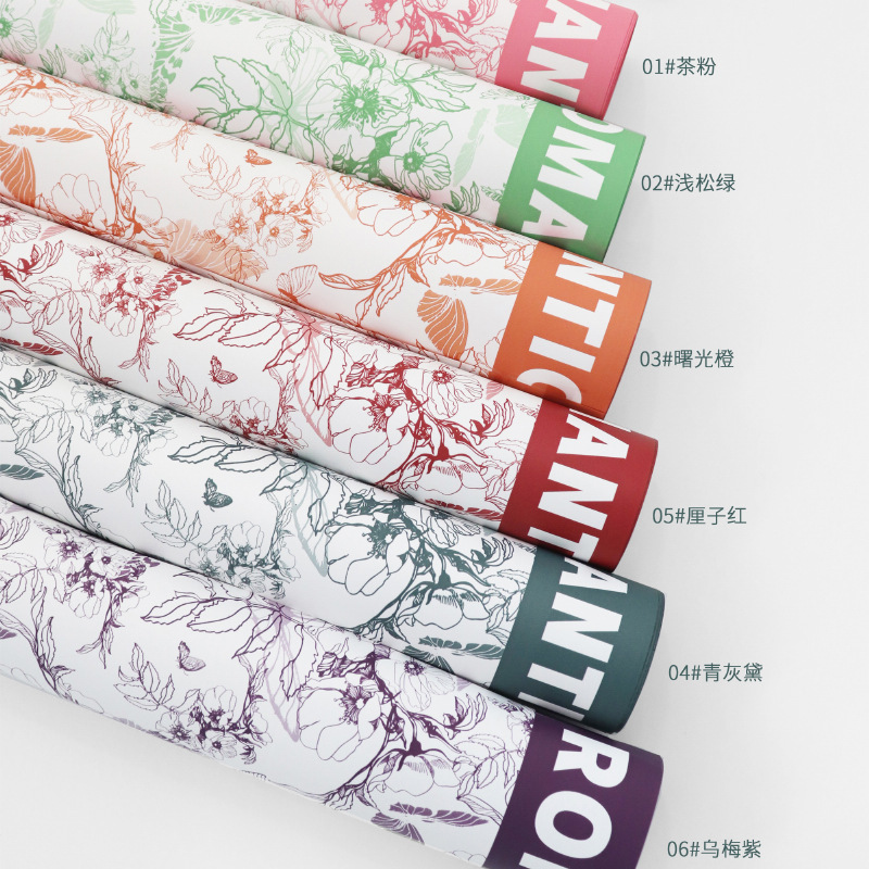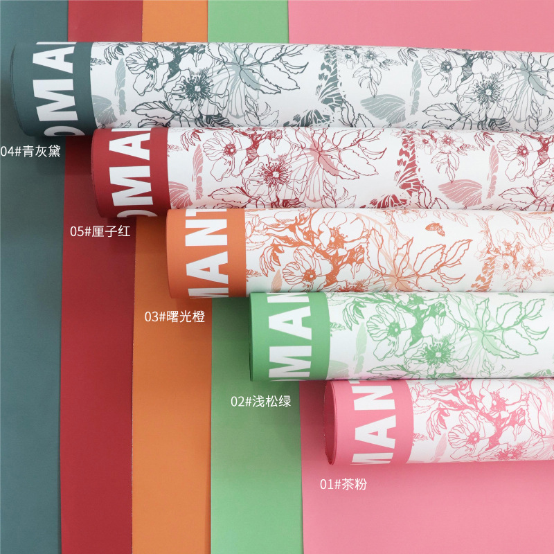 新款花涧蝴蝶包花纸防水加厚珠光膜鲜花包装纸花束包装纸批发