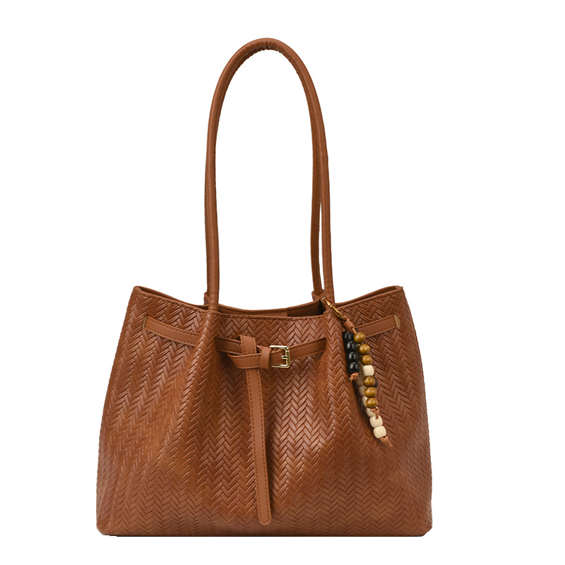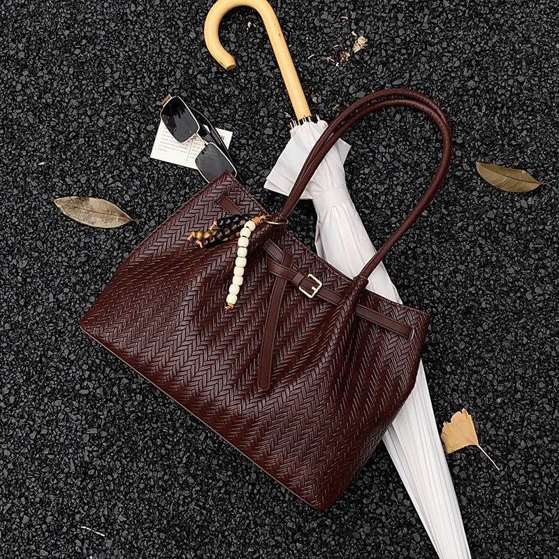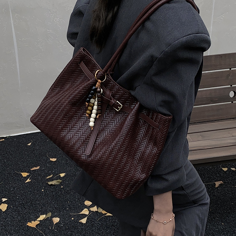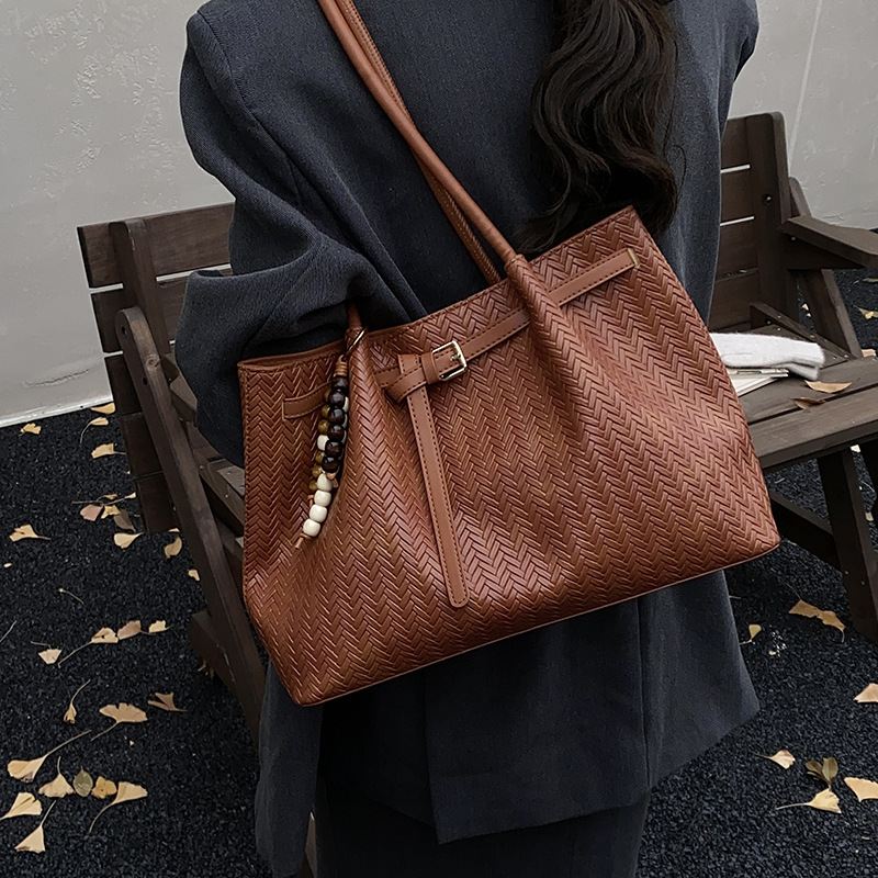 跨境新款秋季大容量纯色复古时尚女士单肩包高级感精致托特包手提