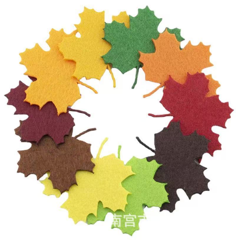 跨境亚马逊感恩节装饰毛毡枫树52个枫叶儿童DIY自粘游戏挂件