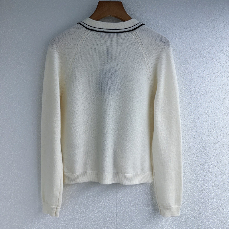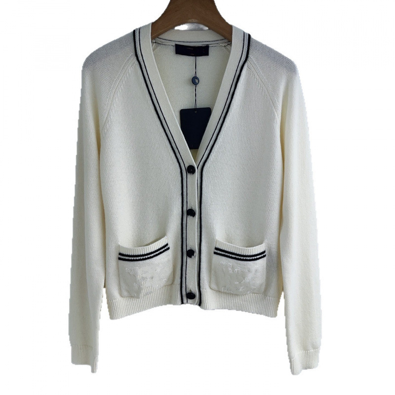 南油顶级版本L家条纹V领25早秋新款百搭双口袋凯旋门logo长袖开衫
