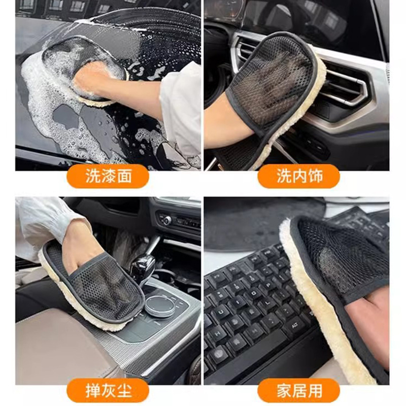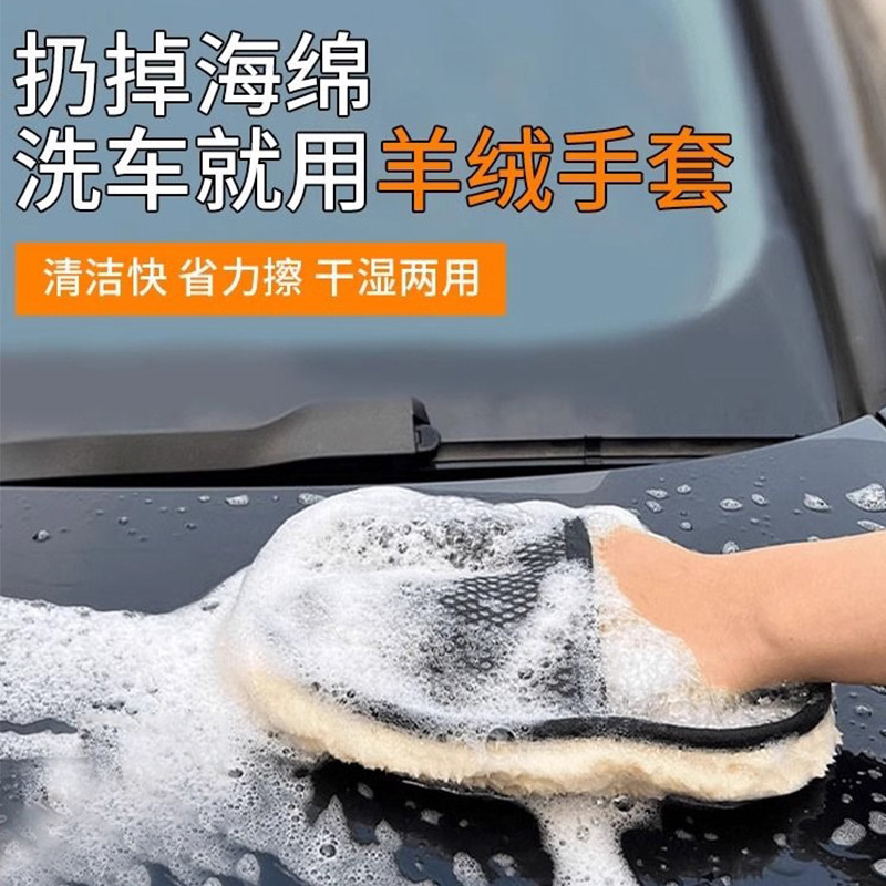 洗车手套羊绒不伤漆面熊掌擦车用去污灵活打蜡汽车洗抹布超细纤维