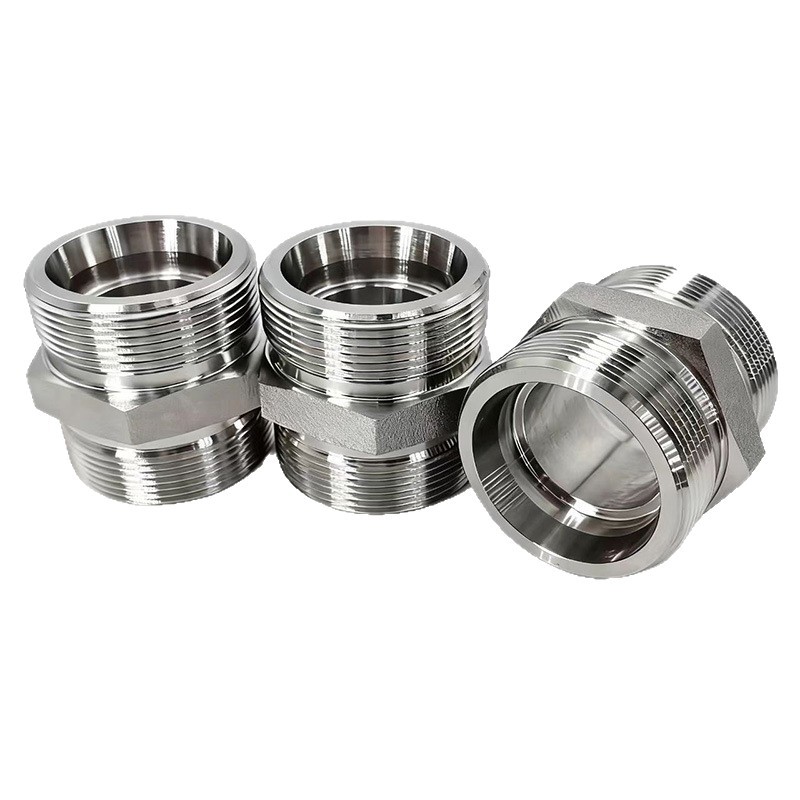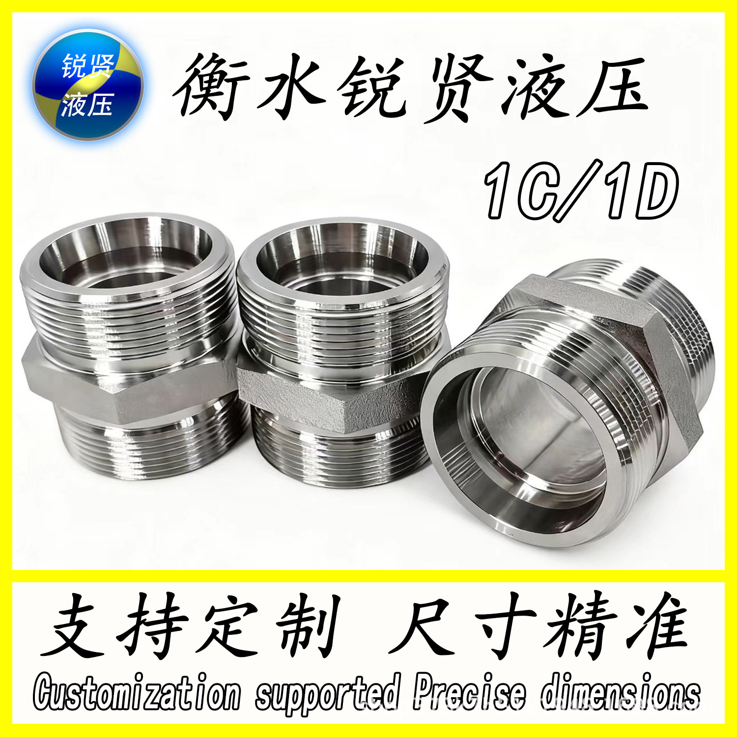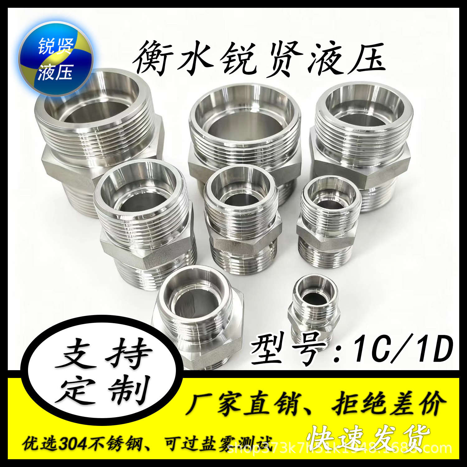 304不锈钢卡套过度接头1C/1D六角公制24度锥液压直通油管