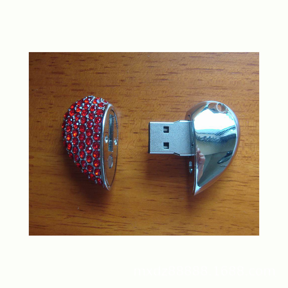 珠宝U盘 金属心形优盘 婚礼摄影礼品促销闪存盘 定制LOGO