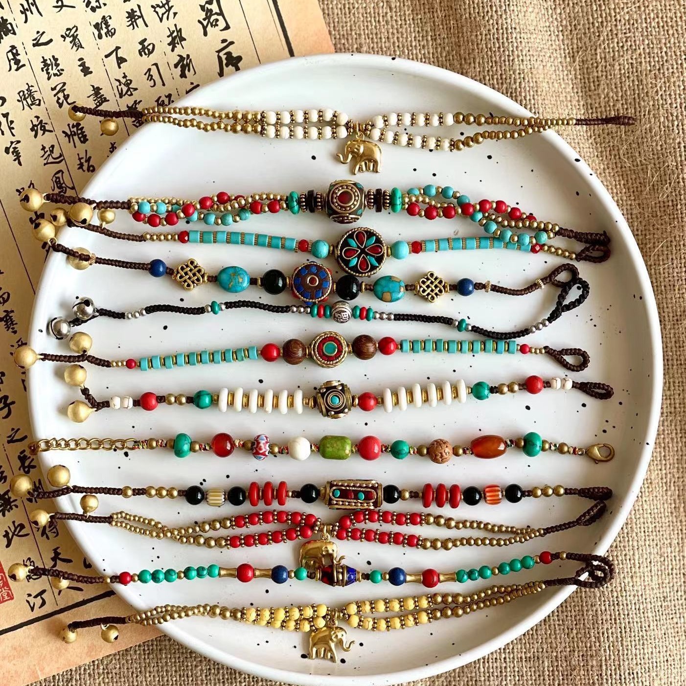 手工编织复古尼泊尔古法手链民族风藏式手串创意铃铛古风手绳