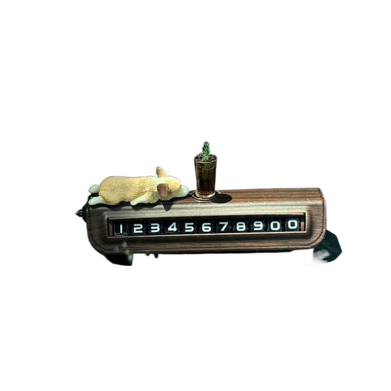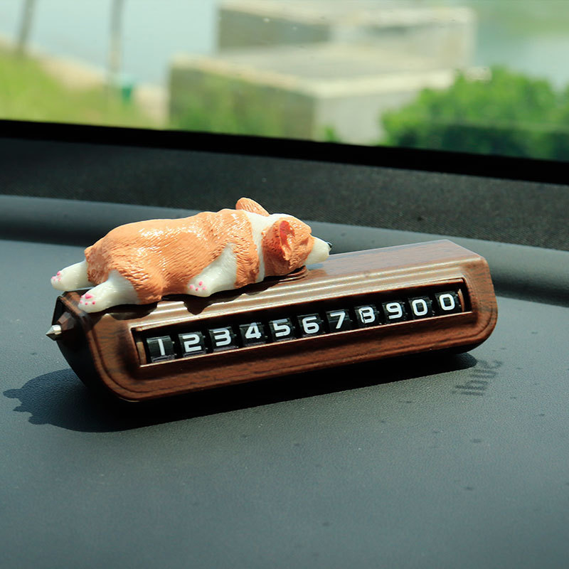 可爱柯基挪车电话牌高级木纹汽车内车载临时停车号码牌移批发包邮