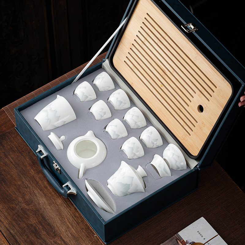 | 容量 | 羊脂玉繁花【井栏壶+盖碗11件套+长方盘】蓝皮箱 | 容量 | 羊脂玉繁花【西施壶+盖碗11件套+长方盘】蓝皮箱 |