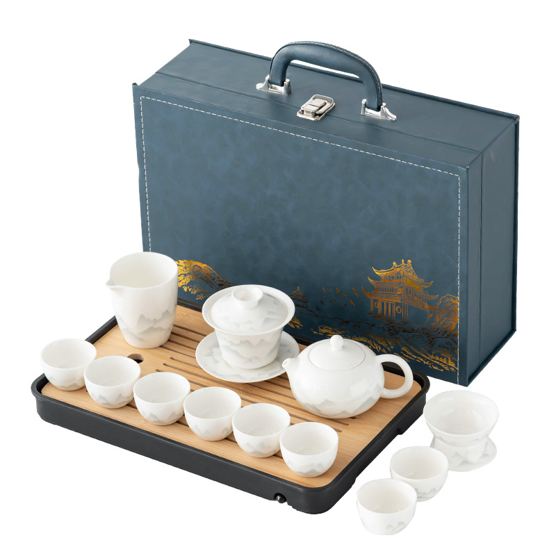 | 容量 | 羊脂玉水墨山水【井栏壶+盖碗11件套+长方盘】蓝皮箱 | 容量 | 羊脂玉水墨山水【西施壶+盖碗11件套+长方盘】蓝皮箱 |