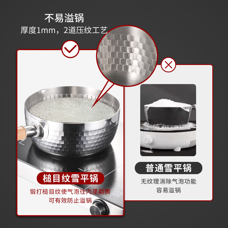 不锈钢雪平锅木柄奶锅礼品无涂层家用宝宝辅食早餐煮面锅不粘汤锅