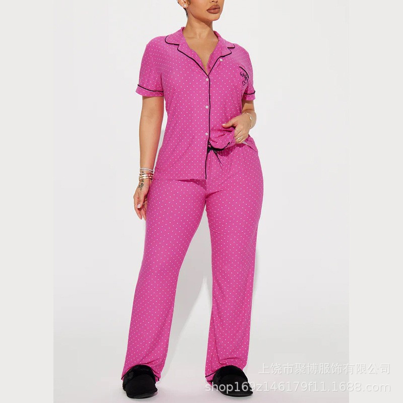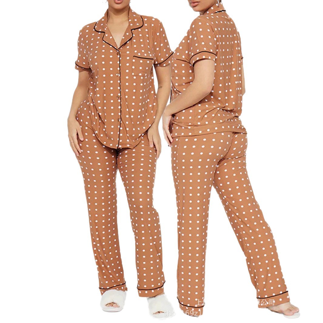 跨境欧码2025家居舒适印花女装前开襟翻领短袖长裤套装3D数码印花