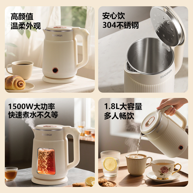 | 电热水壶容积 | 1.8L | 壶体层数 | 双层 |