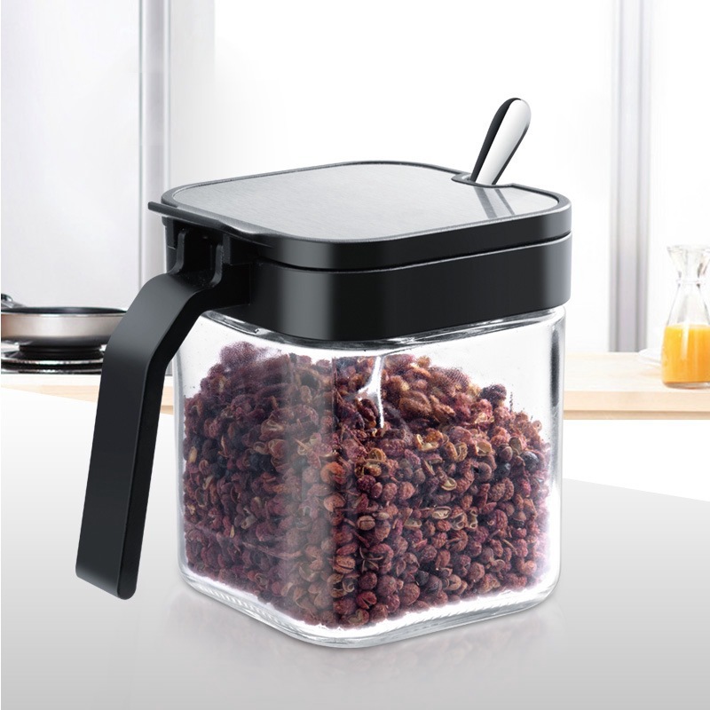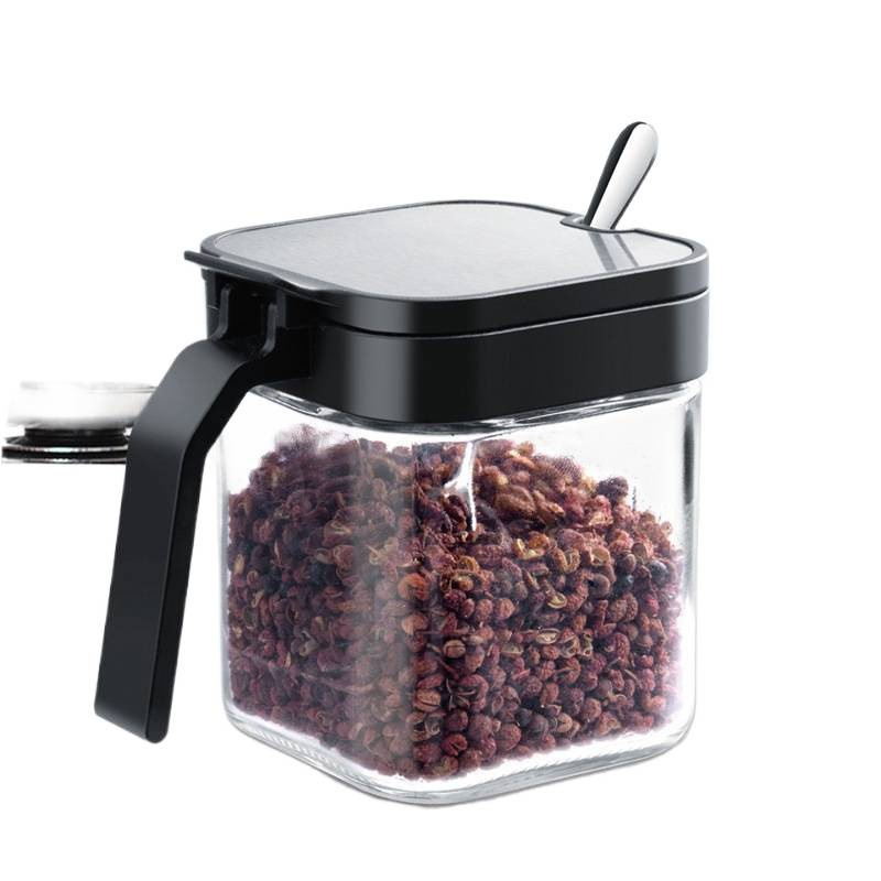 厂家直销耐热玻璃调料罐翻盖调味盒带勺调料盒调味瓶调味罐调意赛