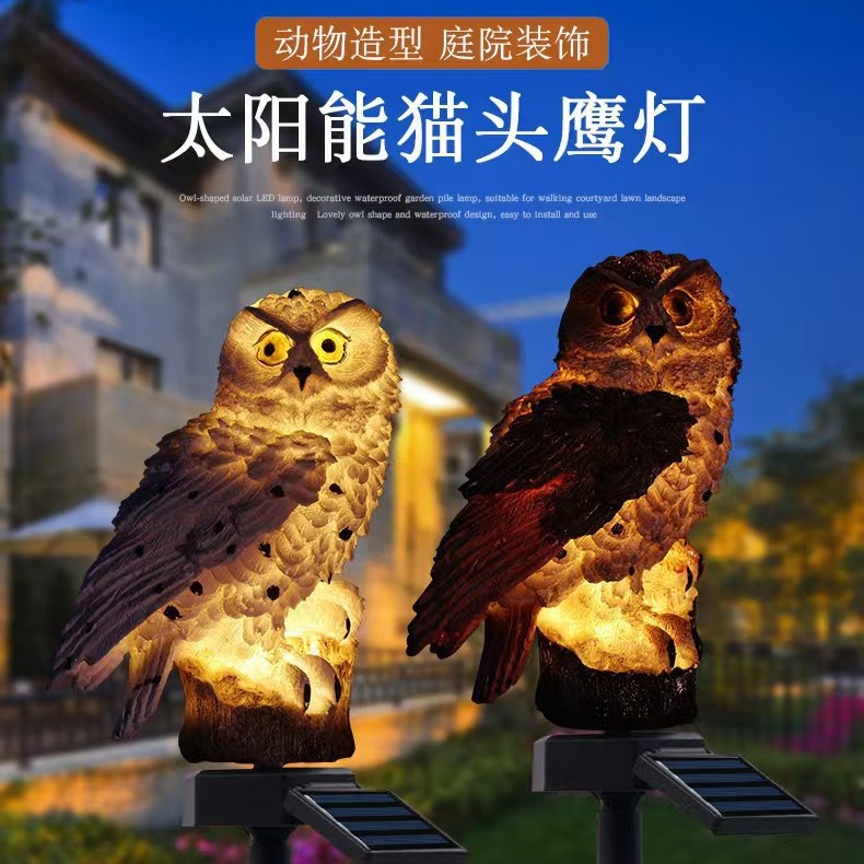 跨境太阳能猫头鹰地插灯户外防水花园庭院草坪装饰氛围灯