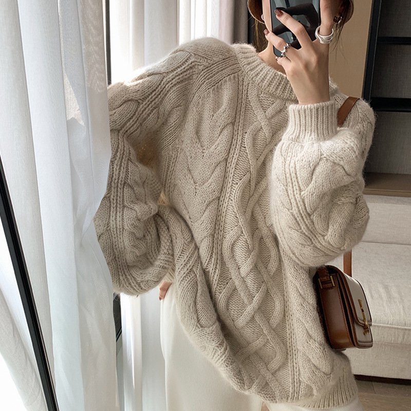 毛衣女麻花套头新款秋冬宽松慵懒风外穿粗毛线针织衫上衣潮
