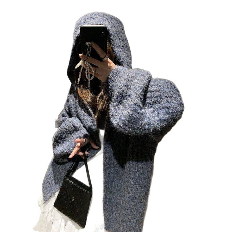 秋冬慵懒毛衣连帽外套新款韩系宽松针织2025开衫中长款加厚