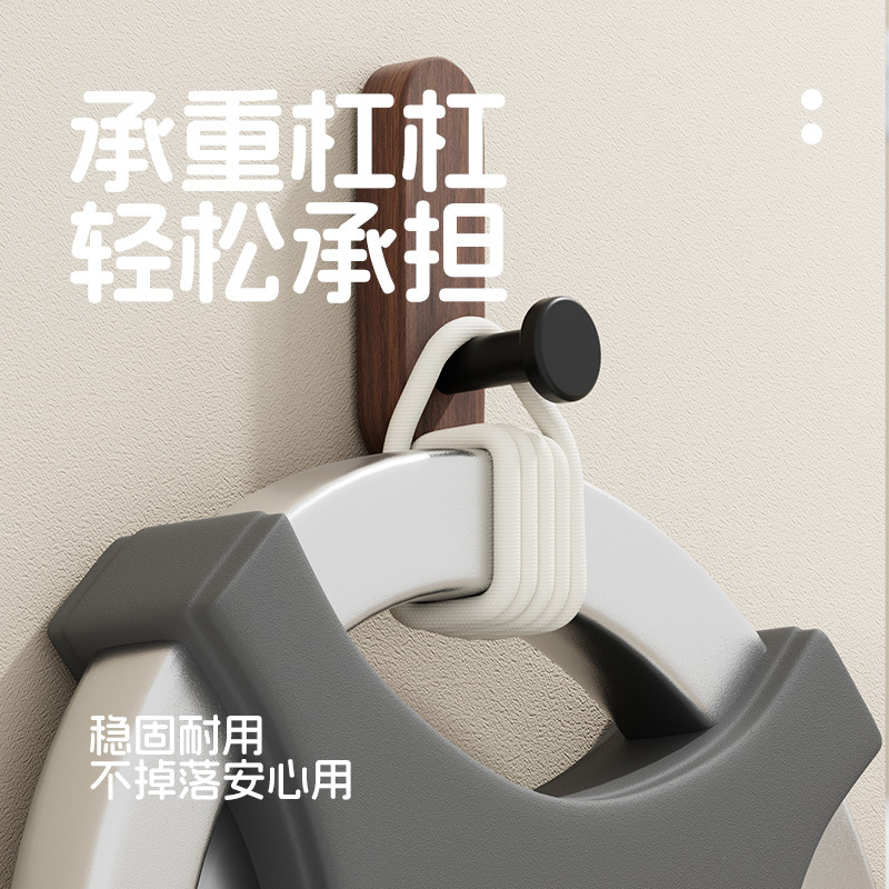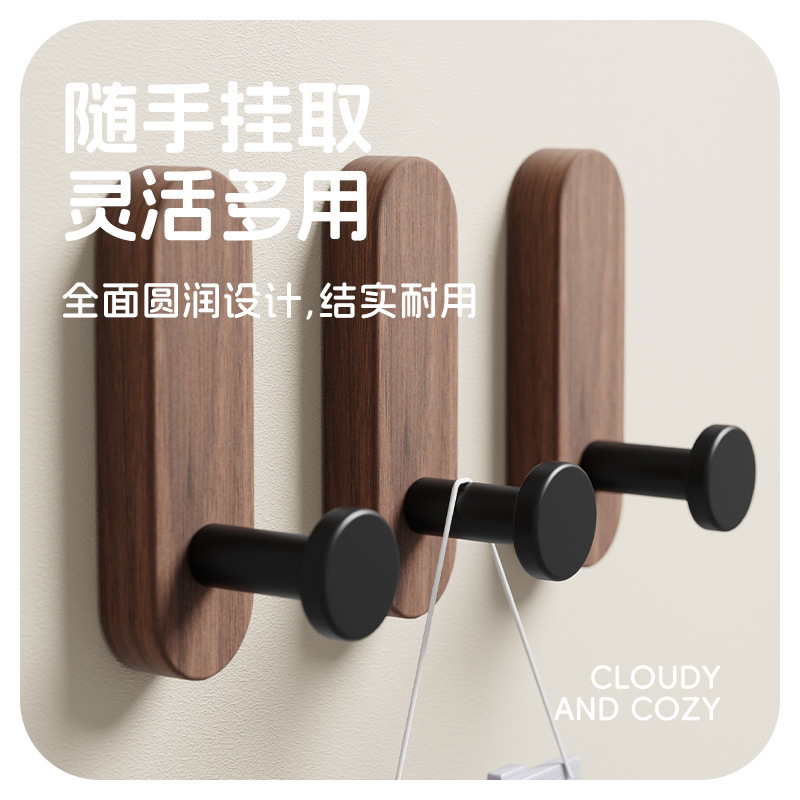 胡桃木挂钩粘胶免打孔玄关挂衣钩粘钩墙上壁挂门后实木衣帽钩
