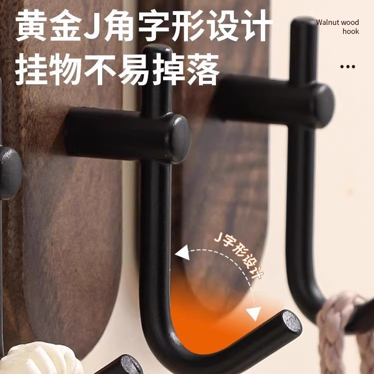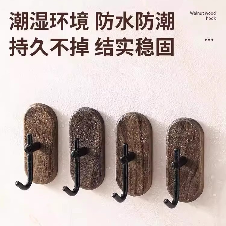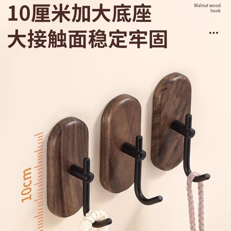 胡桃木挂钩承重粘胶浴室厨房门后玄关衣帽单钩免打孔实木粘钩收纳