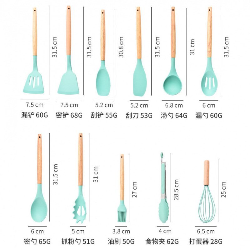| 手柄材质 | 实木 | 木柄硅胶厨具 | Silicone kitchen utensils with wooden handles |