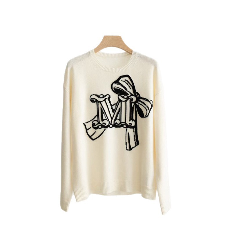南油2025新款提花撞色圆领针织毛衣 休闲慵懒风宽松百搭长袖上衣