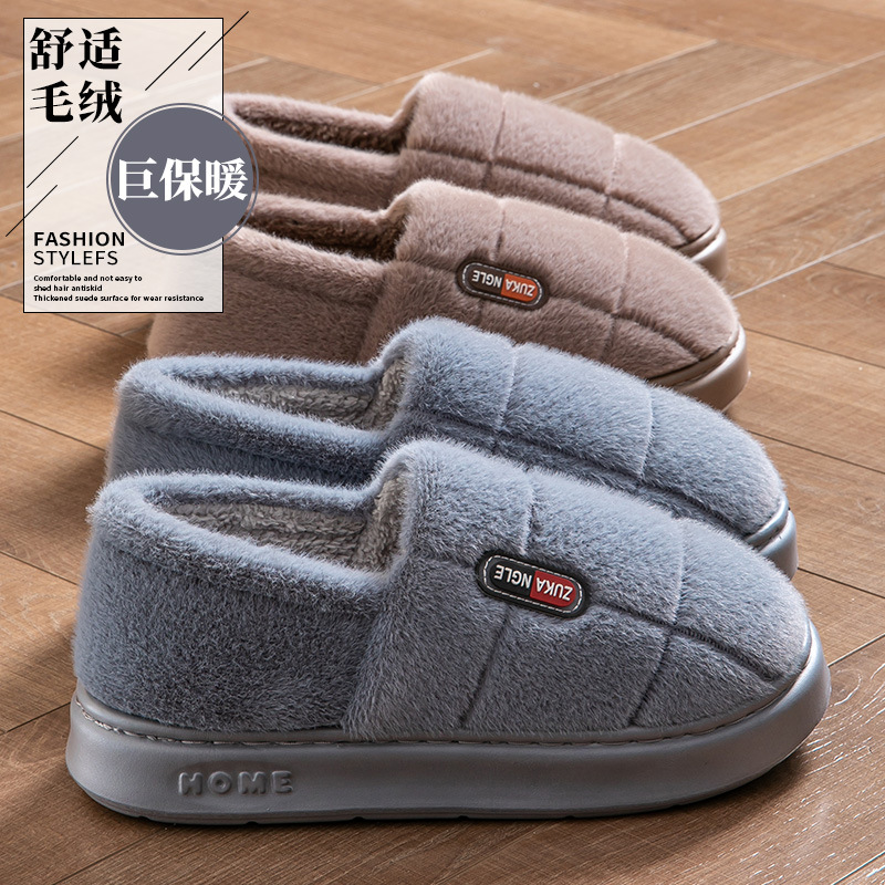 包跟棉拖鞋男士大码冬季2024新款室内家居厚底保暖加绒毛棉鞋女款