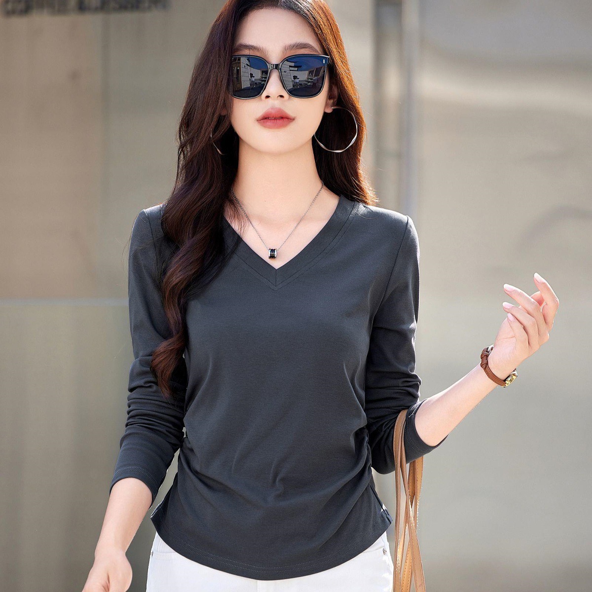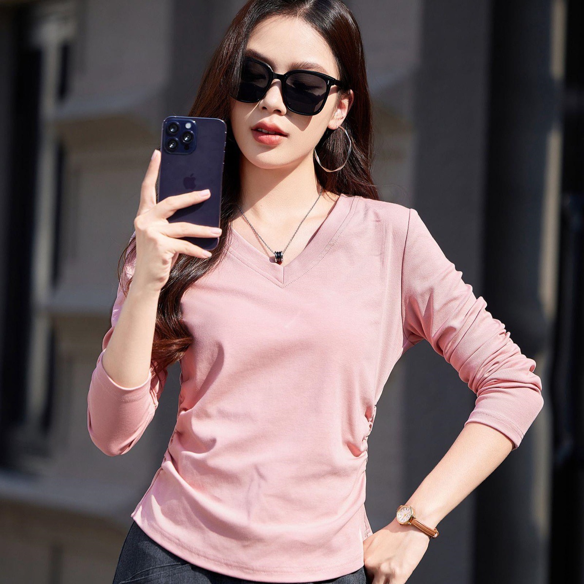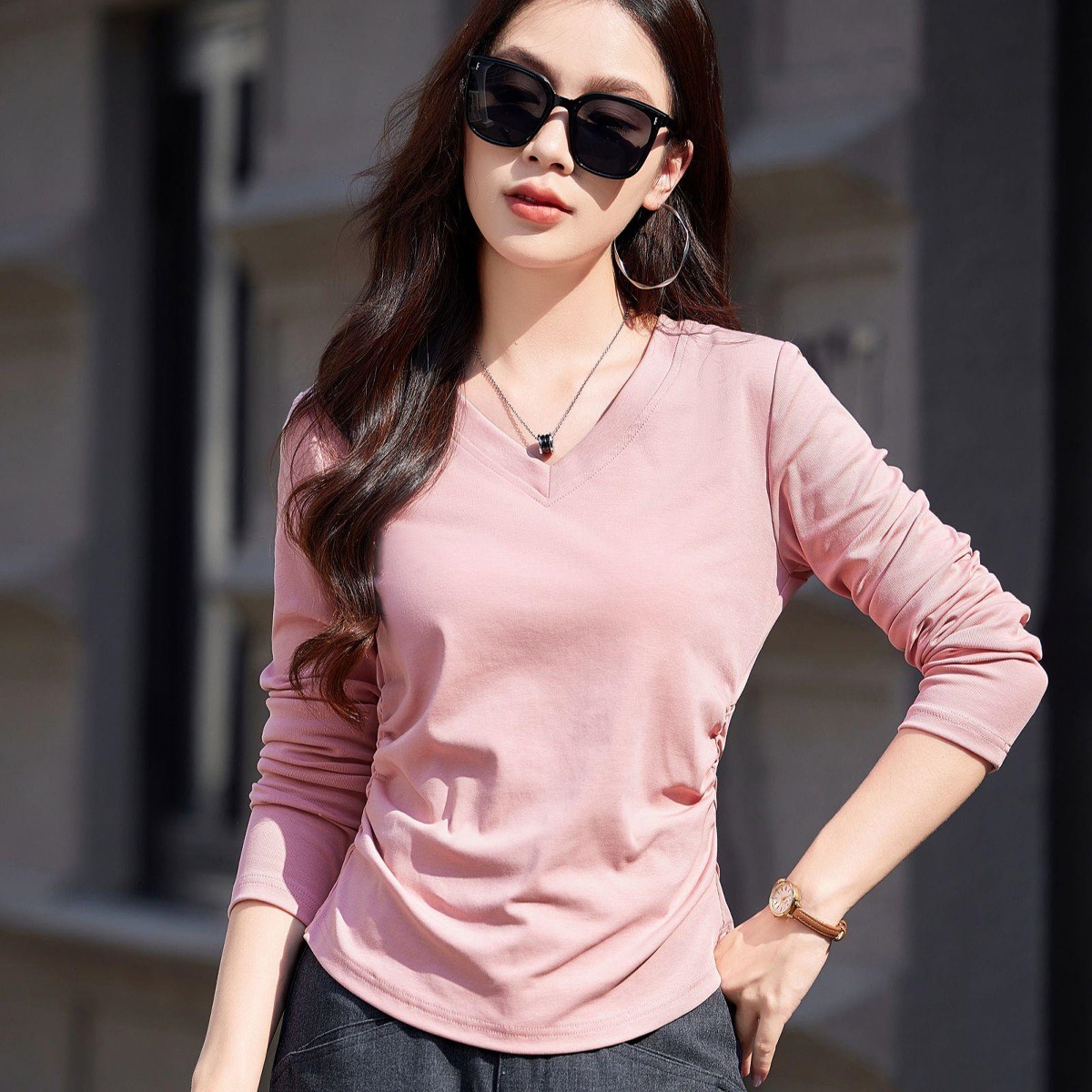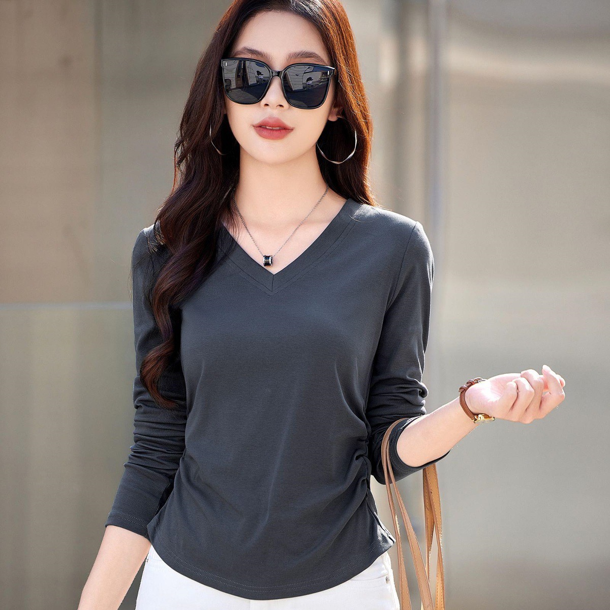 不规则褶皱长袖T恤打底衫女2025春秋新款修身显瘦百搭洋气上衣服
