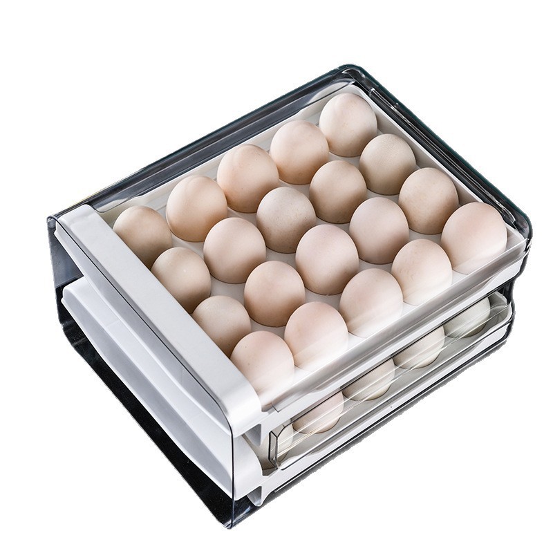 冰箱鸡蛋收纳盒抽屉式保鲜盒厨房鸡蛋盒家用可叠加蛋托双层鸡蛋架