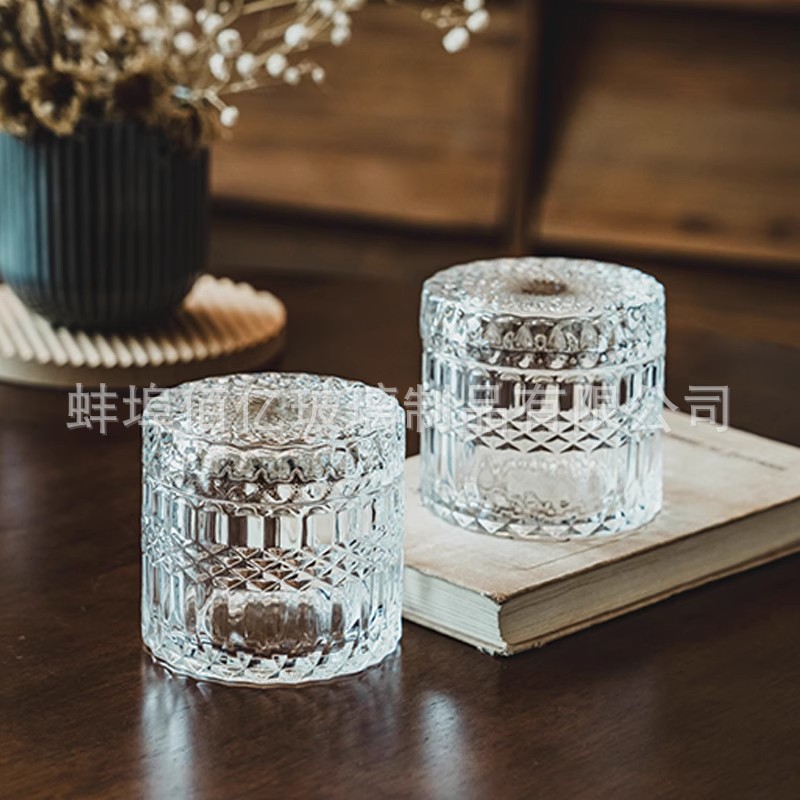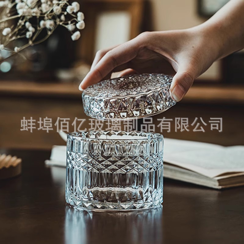 浮雕带盖玻璃罐糖罐家用玻璃罐子储存罐厨房透明调味罐批发糖果罐