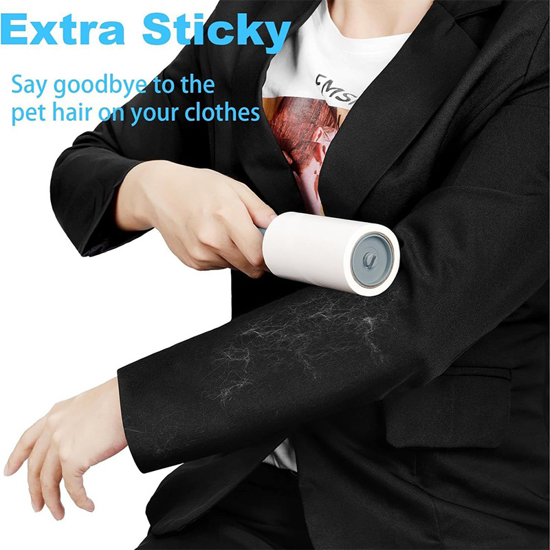 家用便携式一字柄灰色短款黏毛器宠物粘毛器斜撕设计衣服除尘器