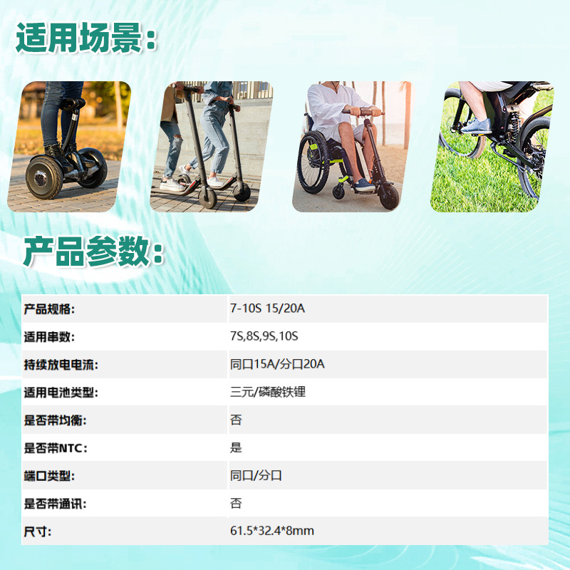 7串保护板BMS逆变器8串10串锂电池保护板15~20A同口三元铁锂保护