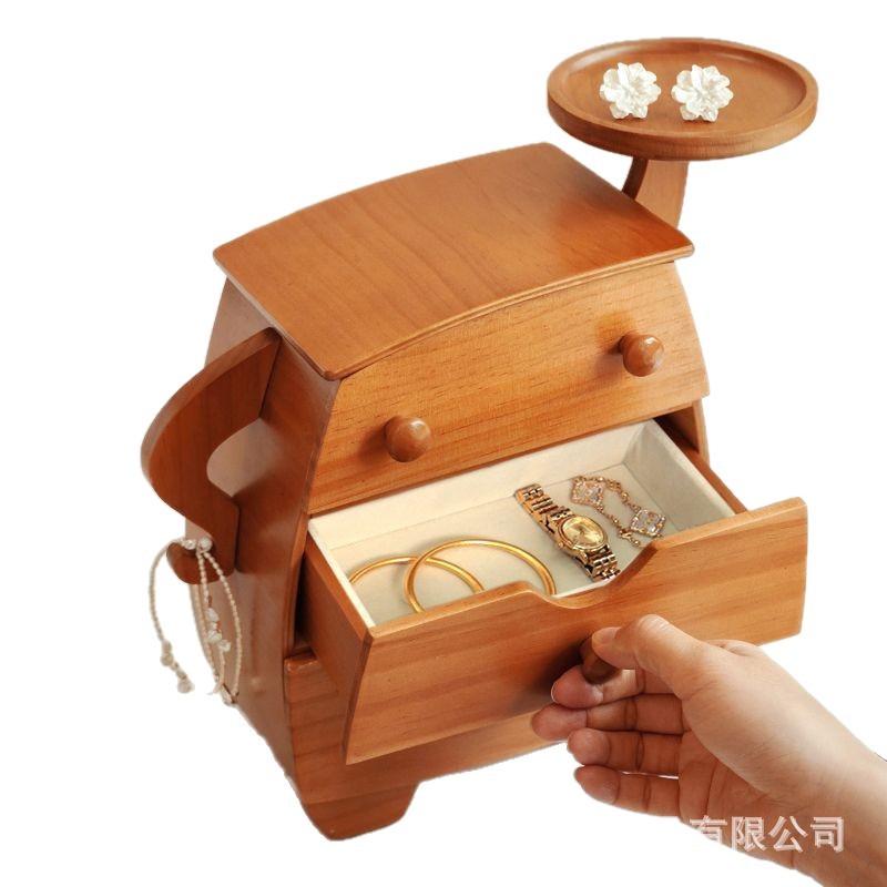 胖墩墩首饰盒化妆品收纳盒精致实木质手饰品项链乔迁新婚结婚礼物