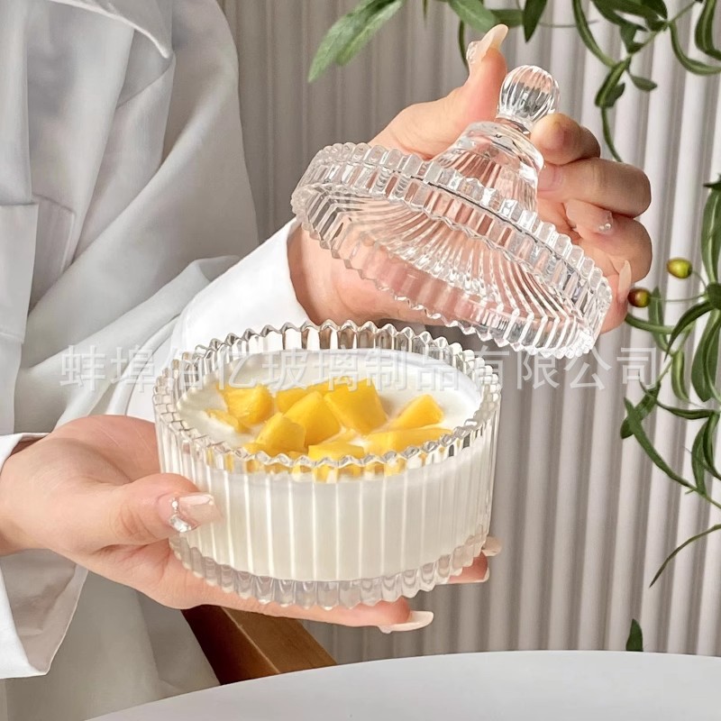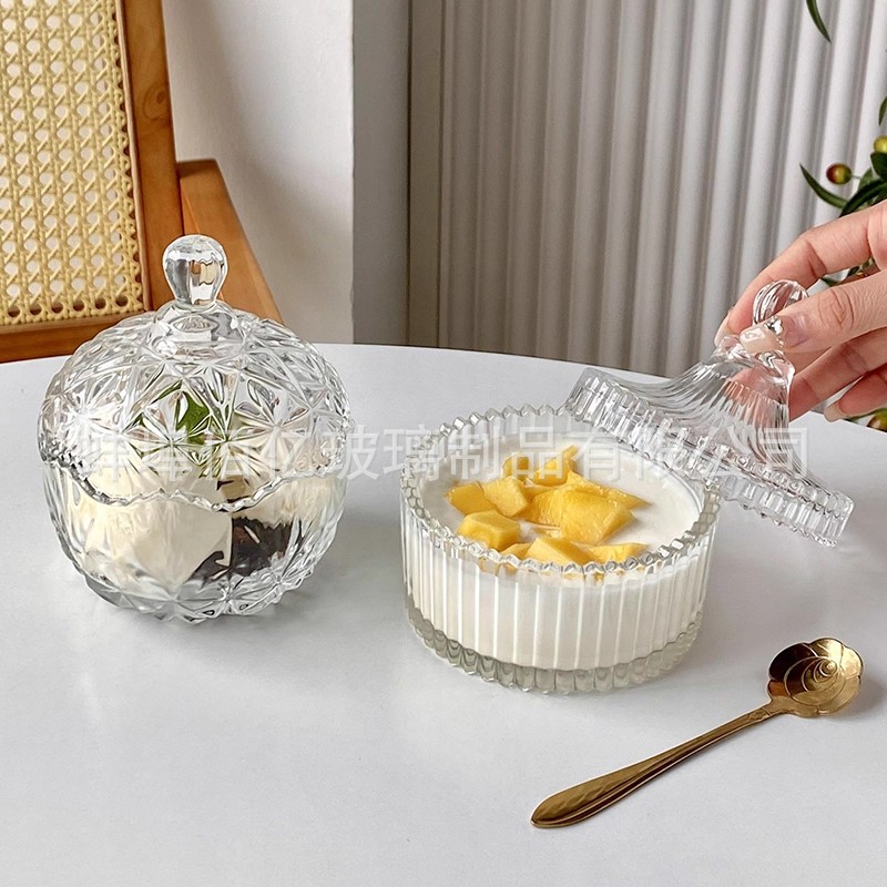 甜品碗带盖早餐玻璃碗网红餐具糖水碗冰粉小碗水果酸奶碗冰淇淋碗