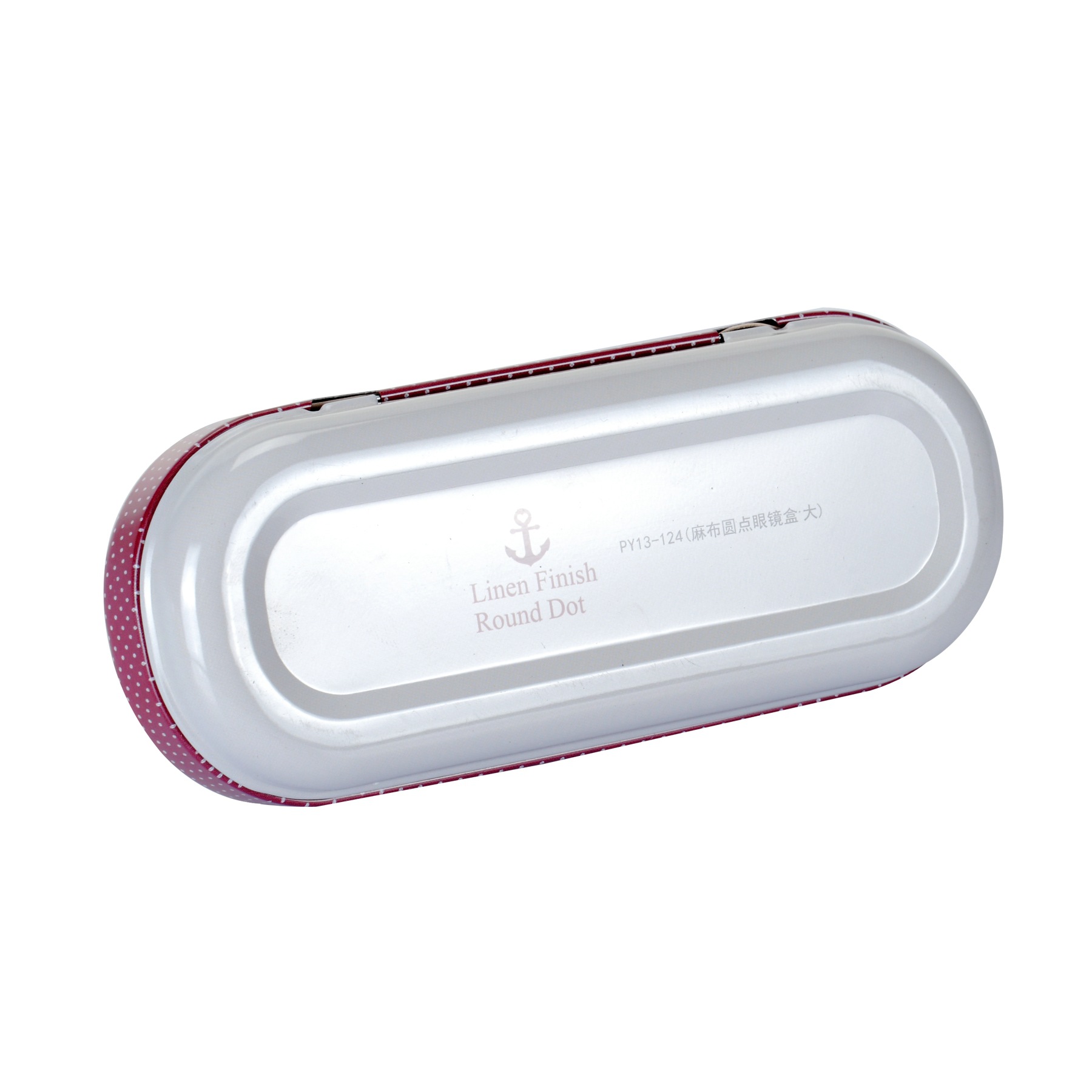 工厂定制眼镜铁盒椭圆马口铁眼镜盒翻盖椭圆礼品铁罐带内衬PET盒