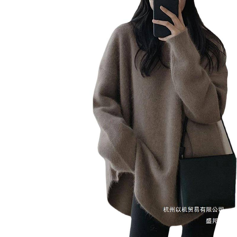 厂家直销新款针织衫中长款打底圆领毛衣女时尚外套女装慵懒风