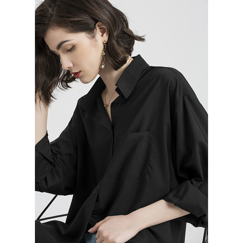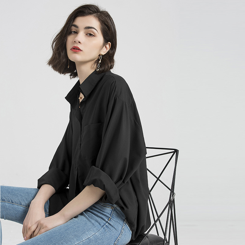 宽松设计感小众黑色衬衫女复古慵懒休闲叠穿上衣高级感港风白衬衣