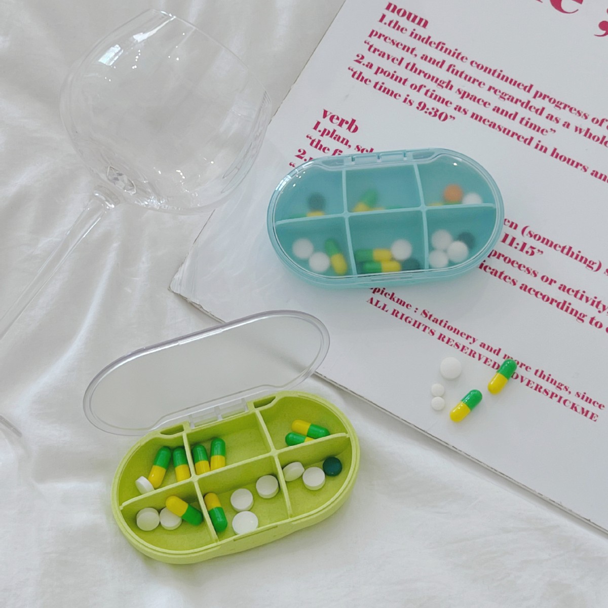 新款6格小药盒随身一周药品分装收纳药盒分格药片医药盒可印logo
