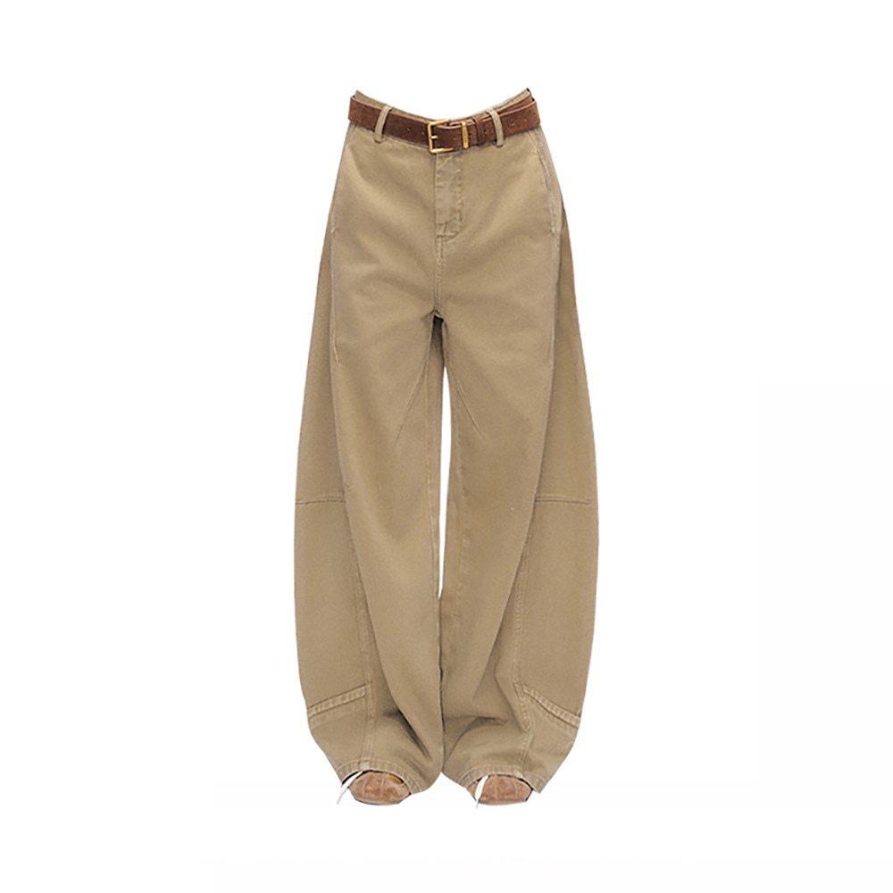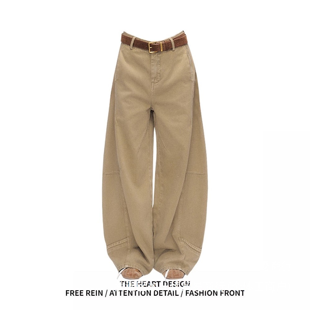 美式复古其色弯刀牛仔裤女春夏季新设计感宽松阔腿直筒长裤子批发