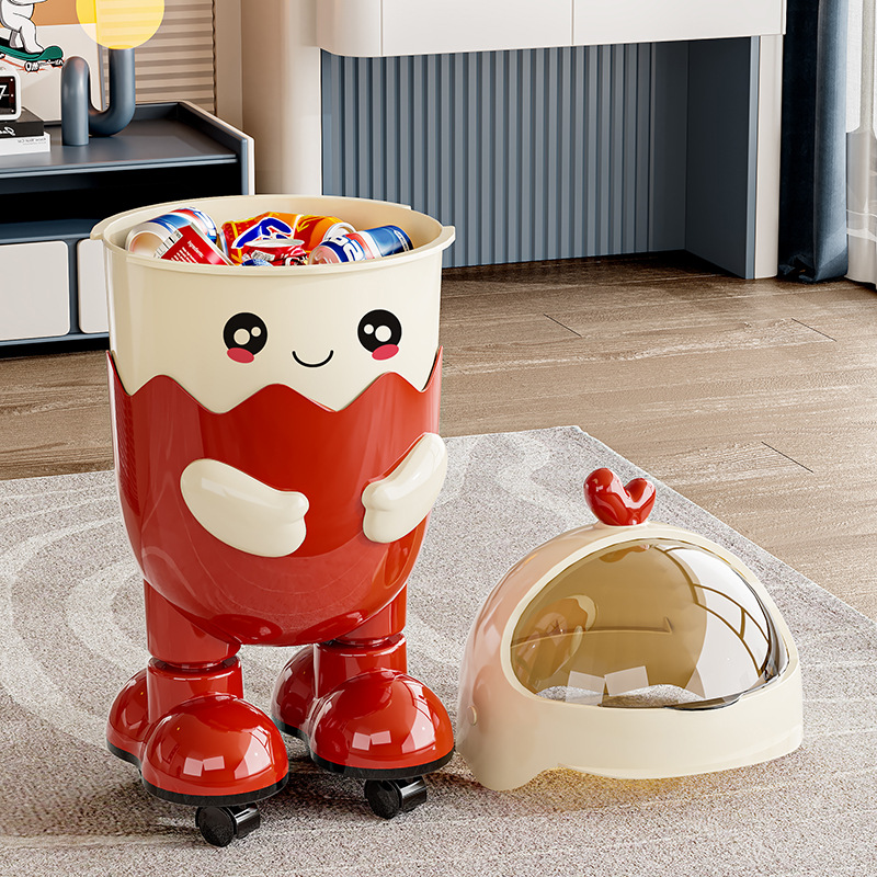 新款客厅卧室多功能垃圾桶大容量卡通纸篓带轮翻盖式杂物垃圾桶