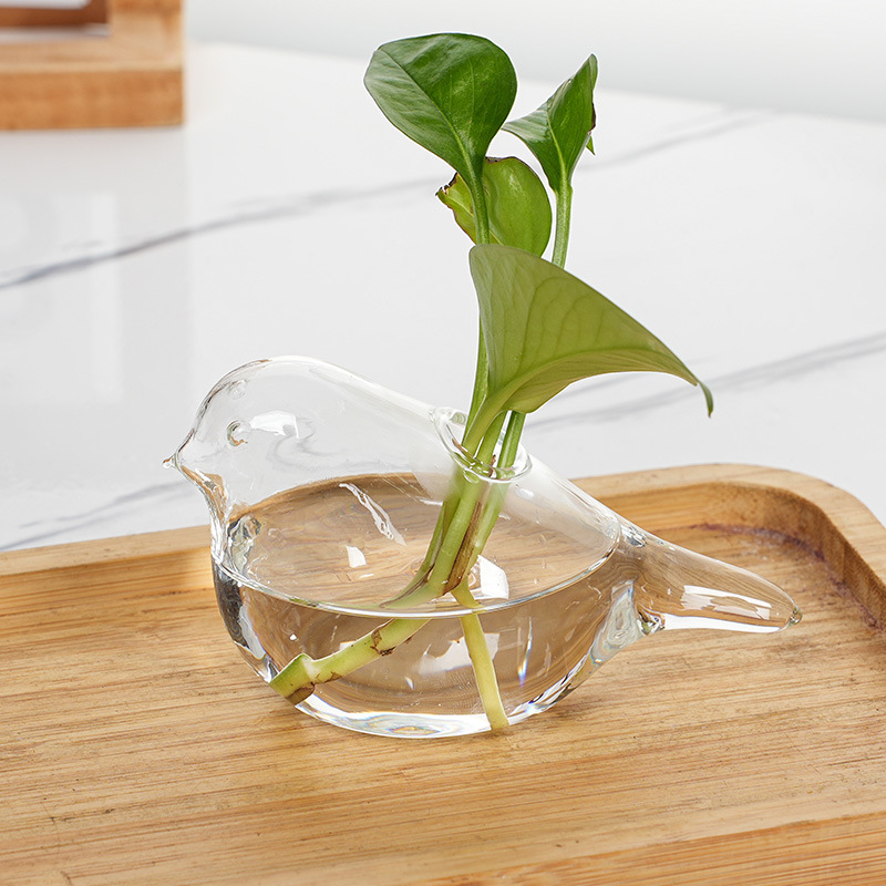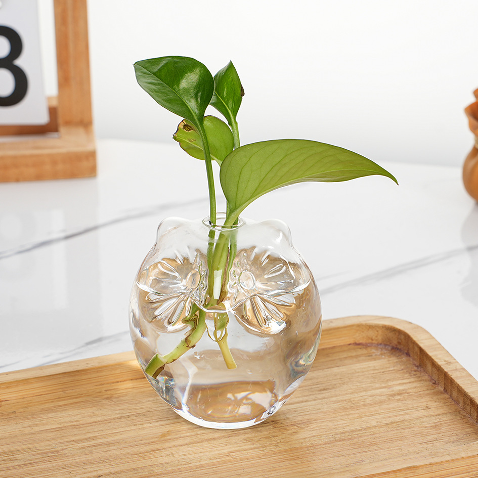 玻璃花瓶插花器透明水培植物小鸟猫头鹰大象动物水培玻璃花瓶摆件