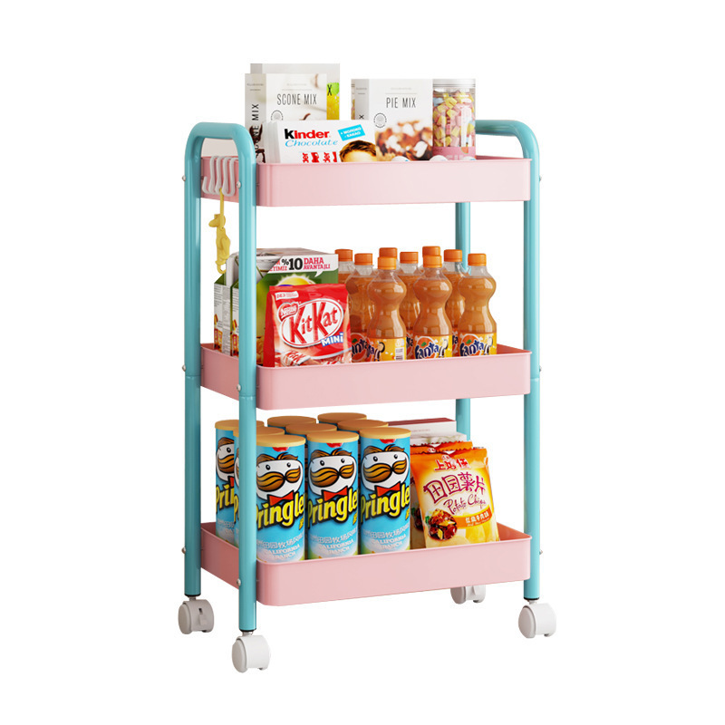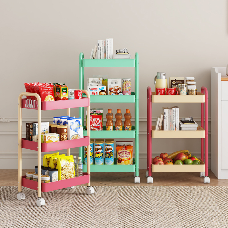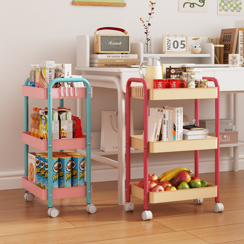 多巴胺拼色小推车置物架简约家用置物收纳可移动型多层落地小推车