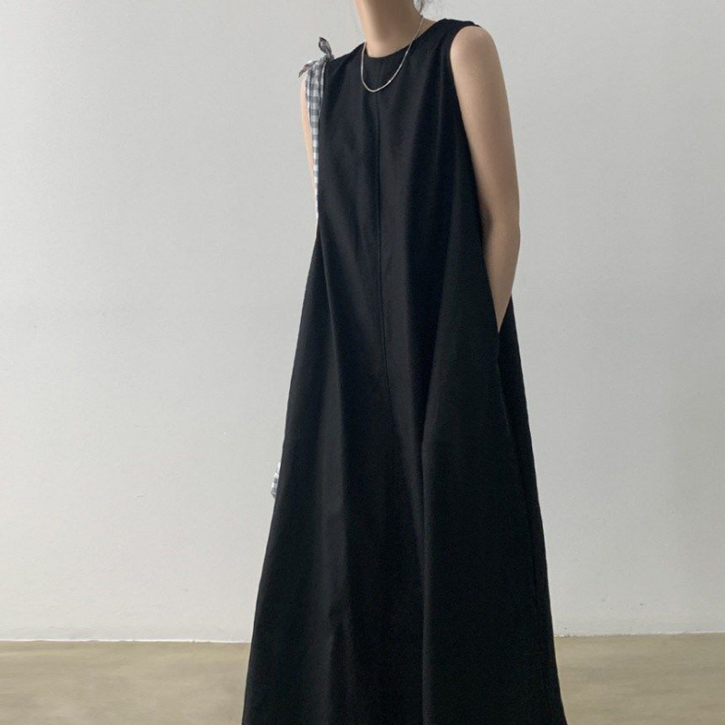 【天然棉麻】韩版圆领宽松纯色休闲大摆无袖长款棉麻连衣裙慵批发