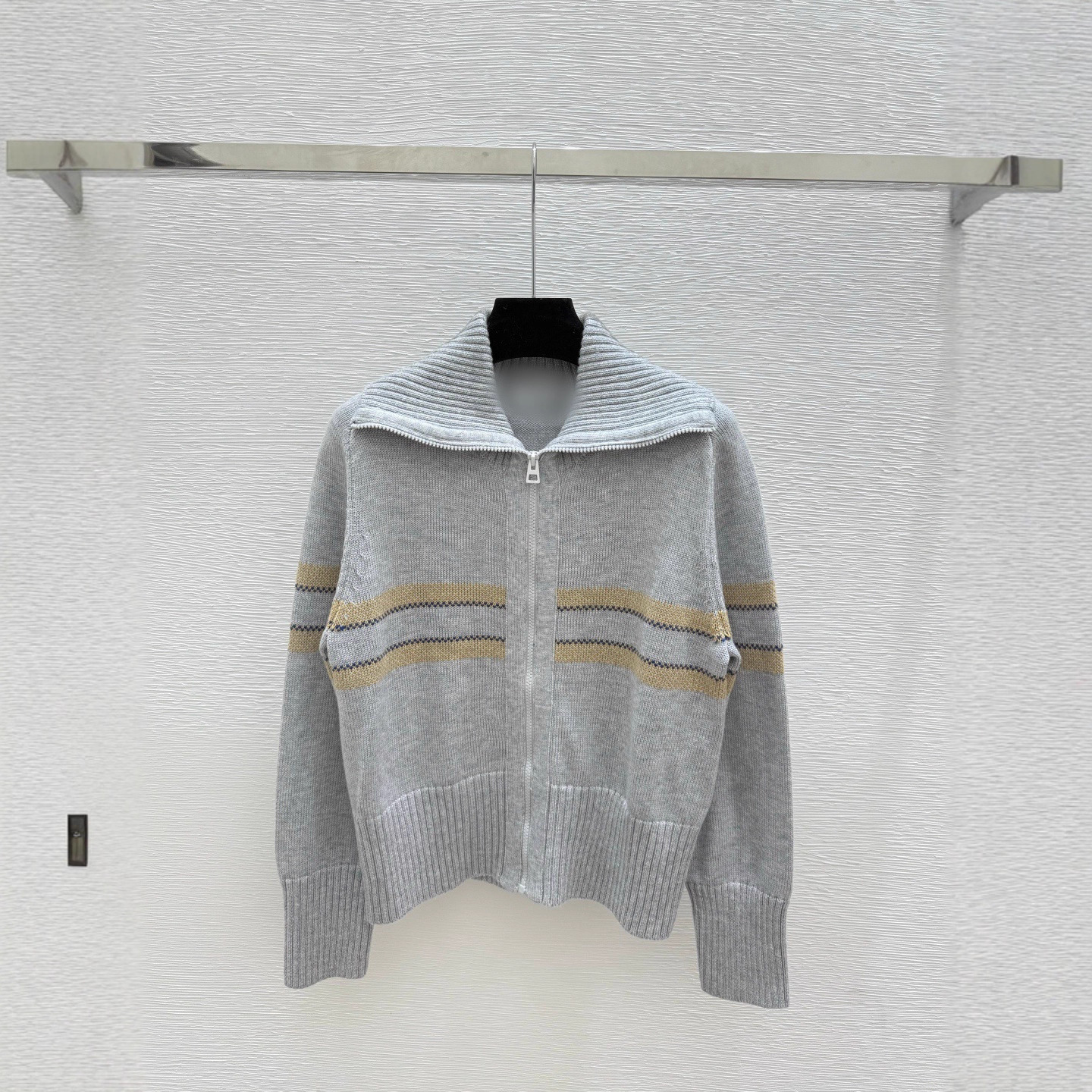 南油D家高版本25秋冬新款宽松撞色条纹翻领长袖针织开衫女