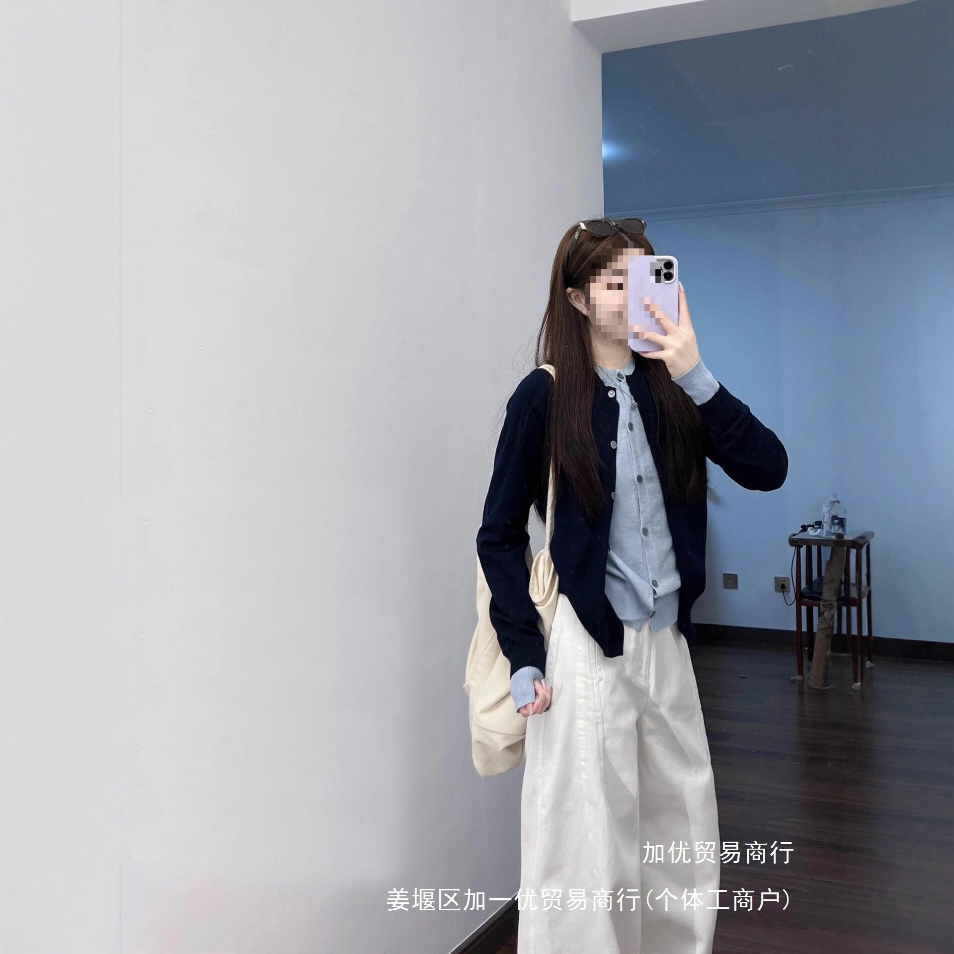 韩系撞色假两件针织开衫女早秋设计感毛衣外套春秋时尚感批发