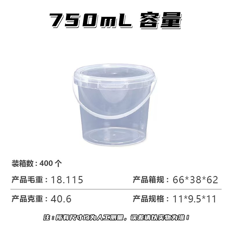 规格型号 | 750ml透明圆桶;透明;圆 | | 包装型式 | 桶 |