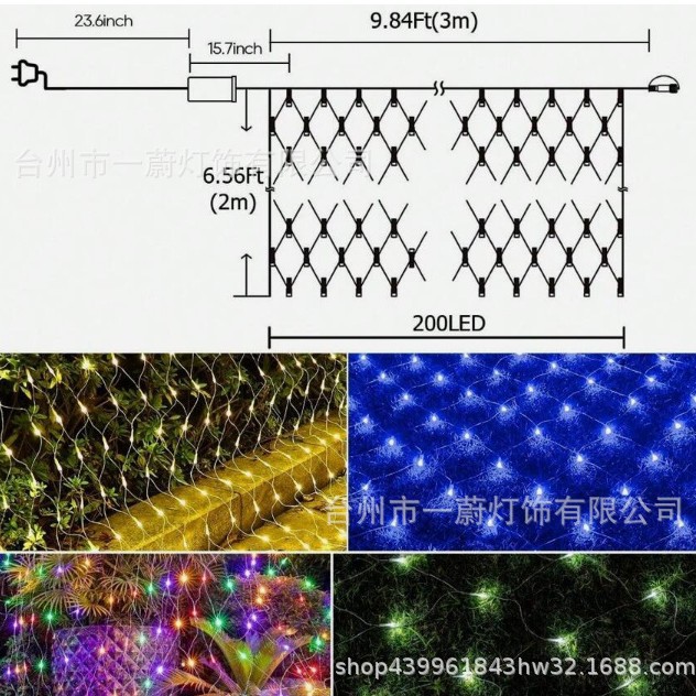 | 主要适用范围 | 户外装饰 亮化 | 颜色 | 插电款220v【1.5*1.5米96灯】可串联 |