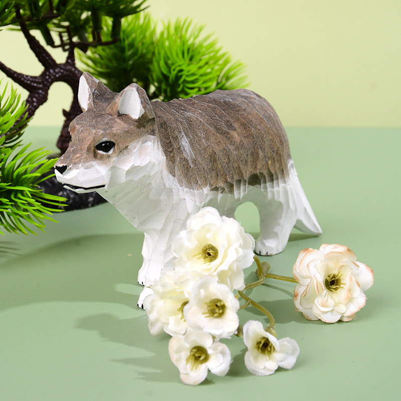动物木雕动物园纪念品首选狼木雕桌面摆件纪念品木雕批发木雕
