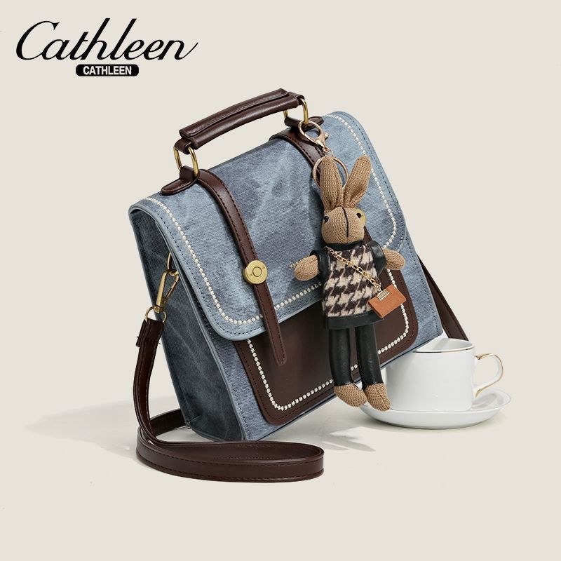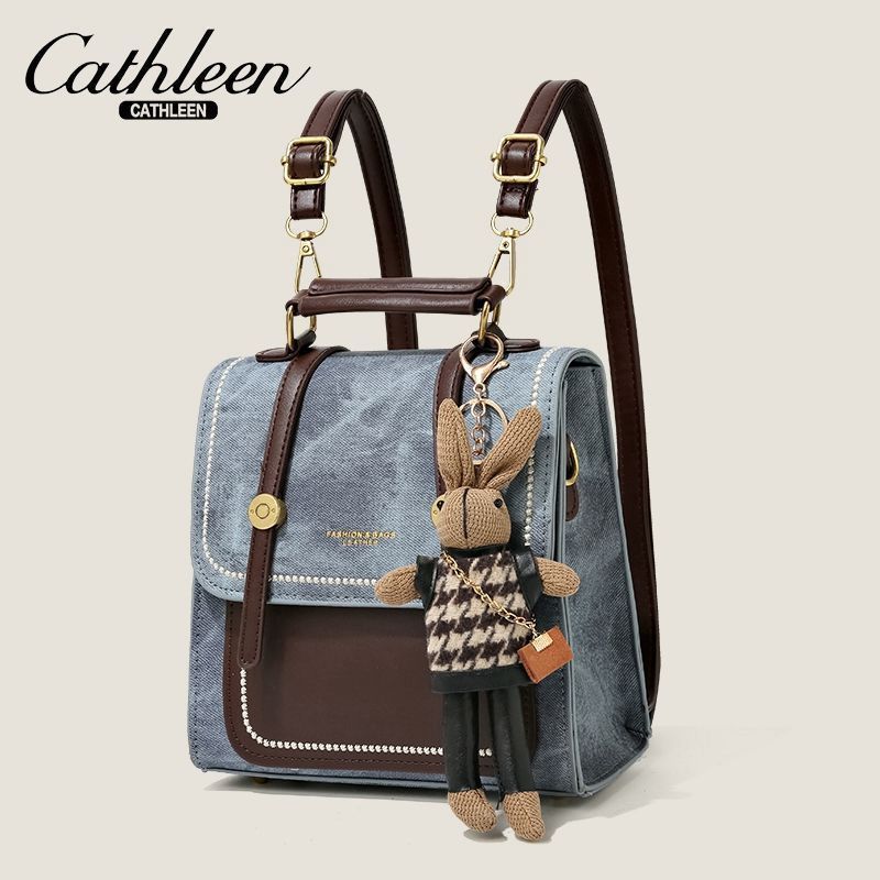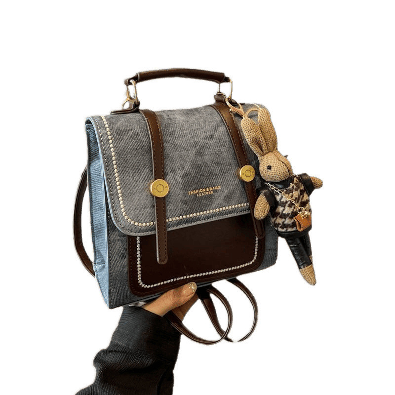 颜色牛仔蓝色带千鸟格背包兔挂件