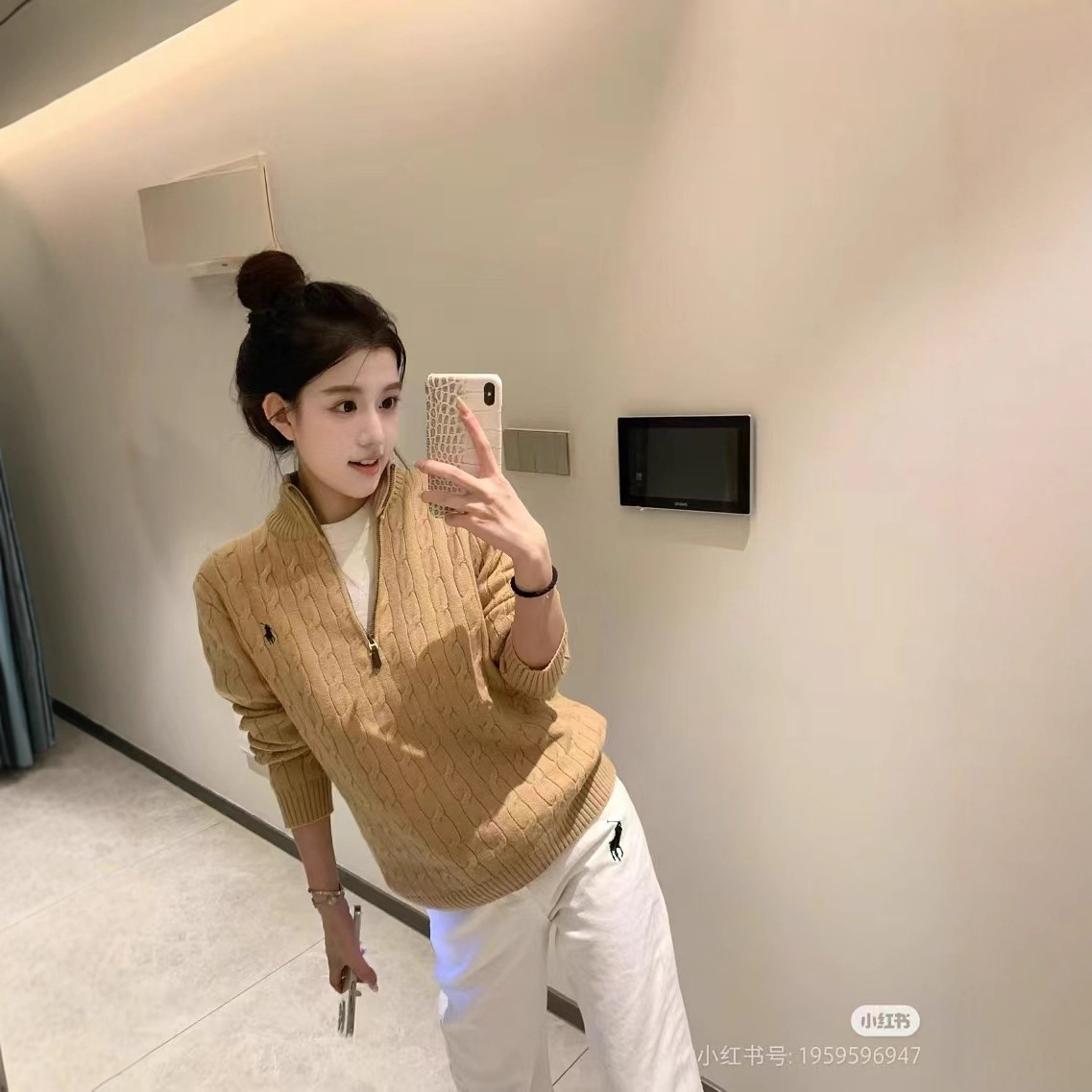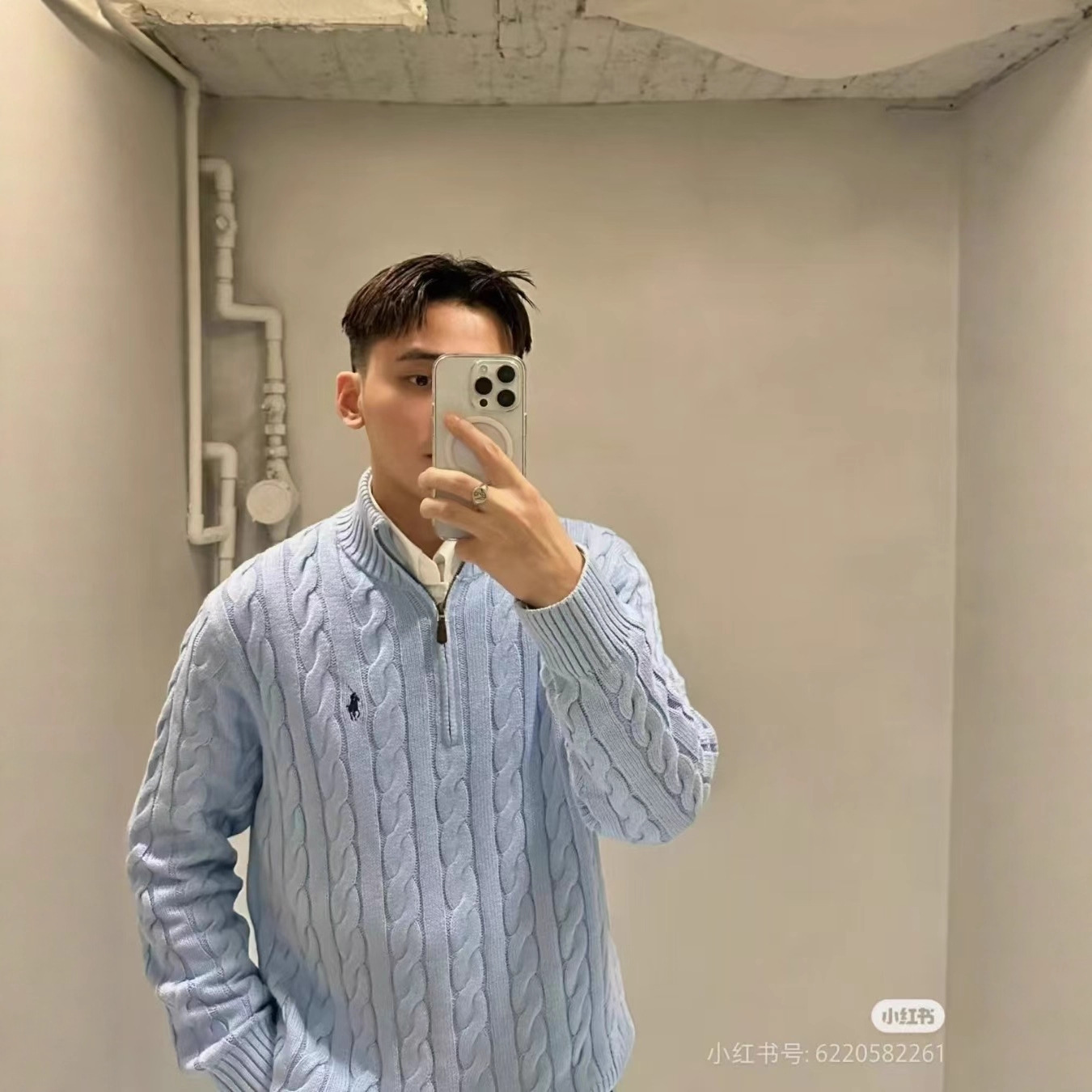 RL拉夫小马半拉链纯色刺绣logo麻花针织衫男女情侣经典款套头毛衣